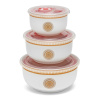Набор состоит из 3 контейнеров, разного объёма, с крышками. Эта посуда поможет любой хозяйке, эстетично сервировать стол и удобно хранить продукты. Пустые контейнера, можно компактно хранить друг в друге. Набор выполнен из высококачественного фарфора.
