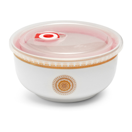 Посуда не впитывает в себя запахи еды, не окрашивается от продуктов. При необходимости салатники можно закрыть пластиковыми герметичными крышками, которые идут в комплекте. Крышки выполнены из пищевого полипропилена и имеют силиконовые уплотнители.