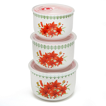 Уникальный набор "Лилии" - отличное решение для хранения продуктов! Этот набор состоит из трех контейнеров, которые легко сочетаются друг с другом благодаря размерам и дизайну.