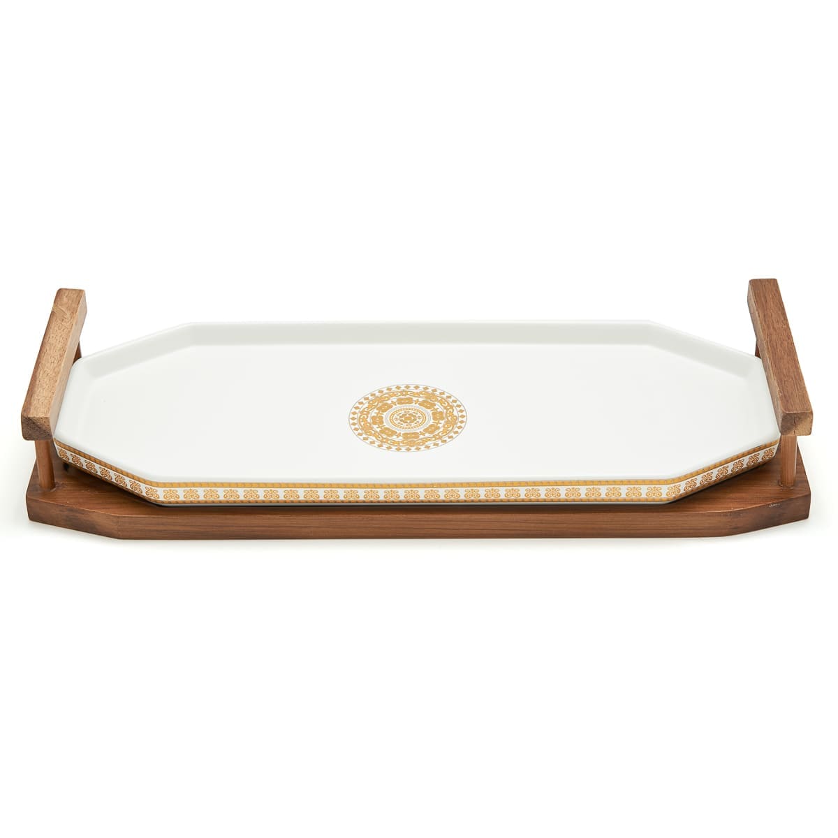 В комплекте с тарелкой идёт деревянная подставка, которая придаёт изысканность и элегантность вашему столу.