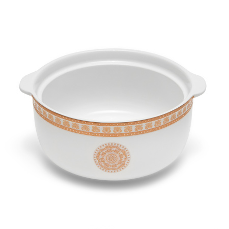 Супница с пиалой (крышкой) — это функциональный и стильный аксессуар для сервировки стола. Изготовленная из прочного фарфора, она обеспечивает длительное сохранение температуры блюда, что позволяет наслаждаться его вкусом и ароматом в течение всего приёма пищи.
