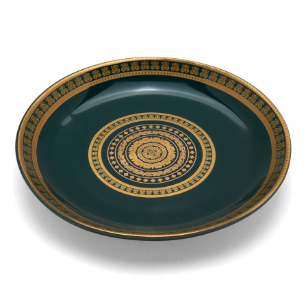 Чайная пара "Малахит" - это набор из двух предметов, включающий в себя чашку и блюдце. Выполнен из качественного китайского фарфора с оригинальным принтом, который представляет собой орнамент в виде Солнца, символизирующий богатство и силу.