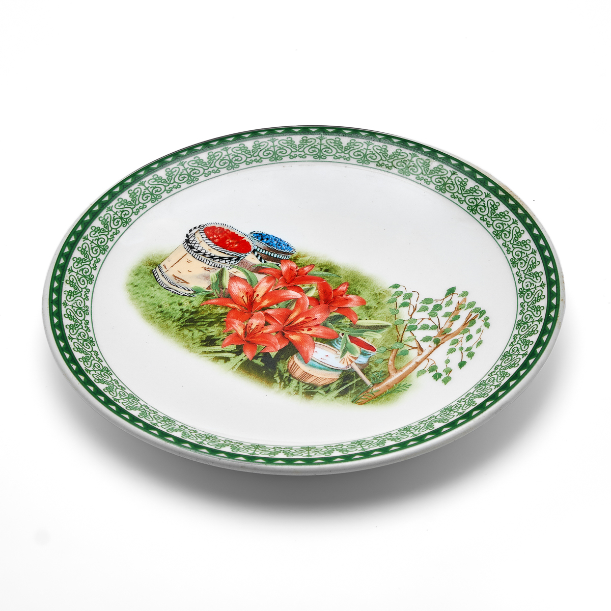 Круглая форма и летний рисунок с изображением лилий и ягод придают ей неповторимый вид. Это не просто посуда, это предмет декора, который будет радовать глаз и поднимать настроение каждый раз, когда вы будете использовать его.