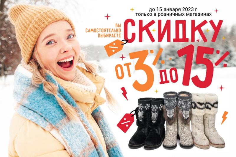 При посещении наших отделов до 15 января 2023г., включительно, при покупке унтов на кассе, вы