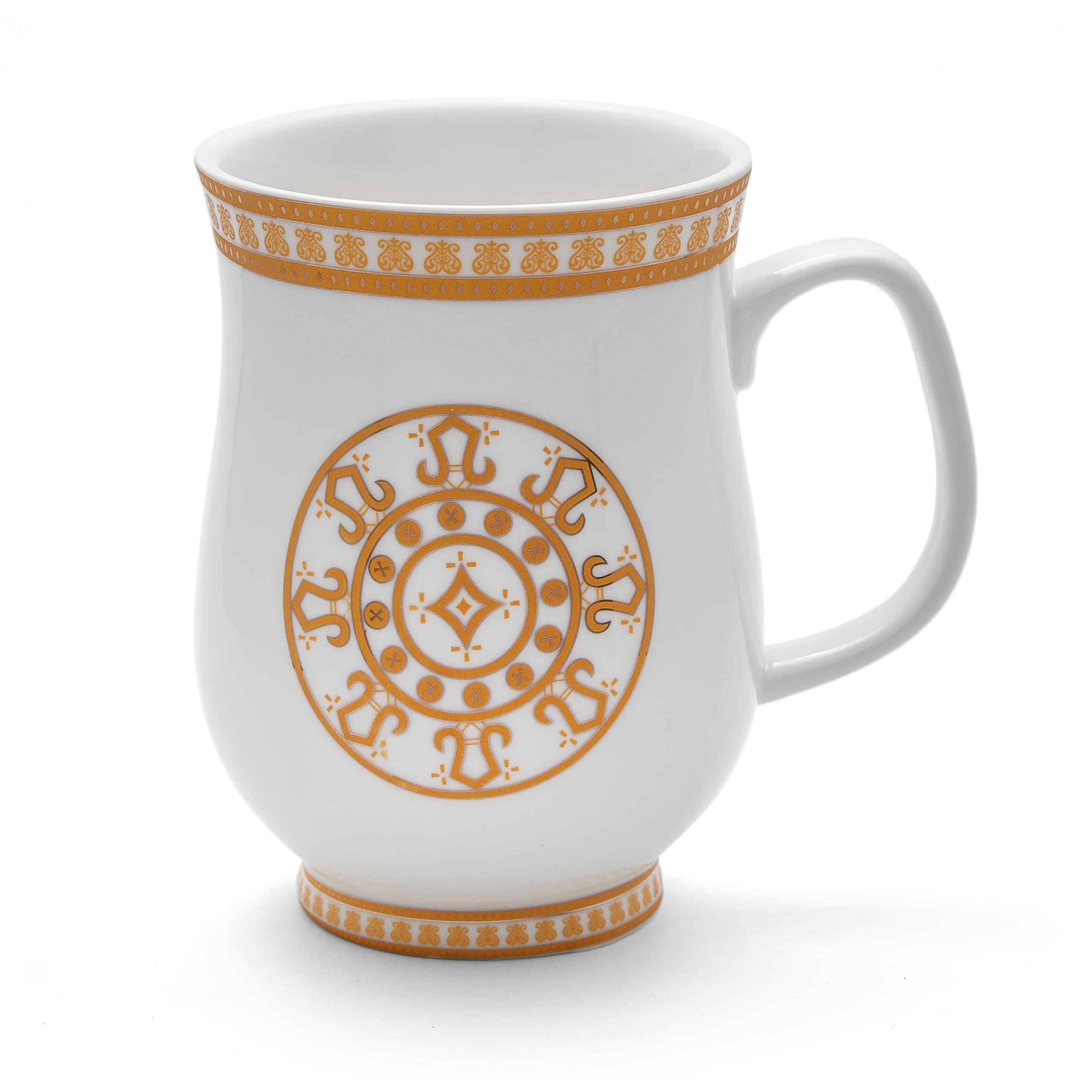 Стильная форма, вместительный объём, отделка золотом — всё это делает кружку неотразимой и очень привлекательной.