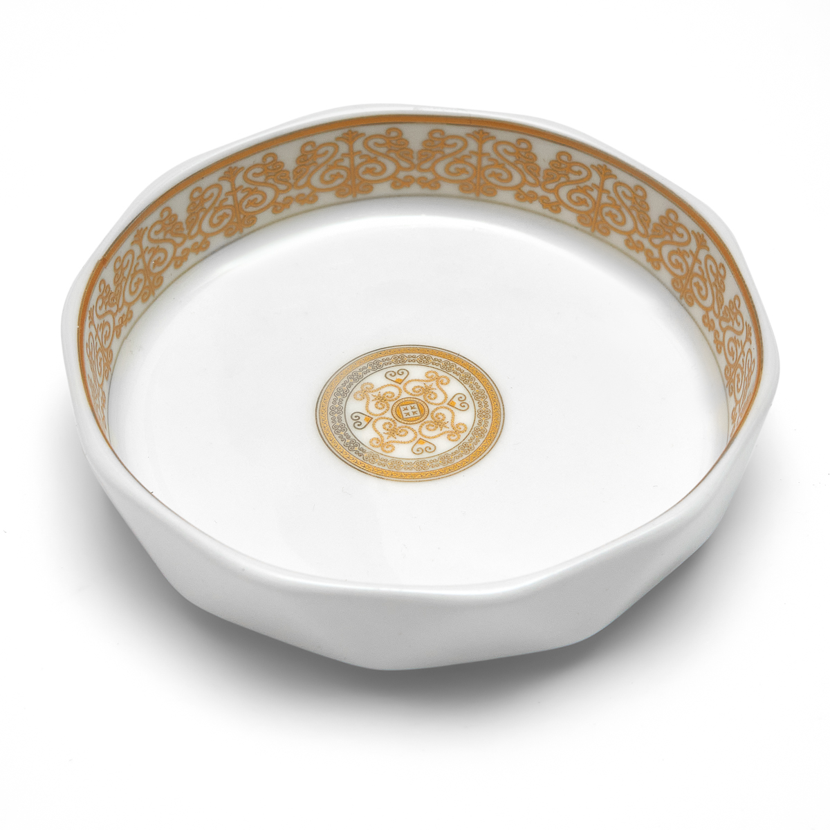 Розетка выполнена из высококачественного белого фарфора с изысканным рельефным узором, который подчёркивает утончённый вкус владельца. Безопасны для здоровья, эстетичны, прочный фарфор позволяет использовать посуду для ежедневного быта.