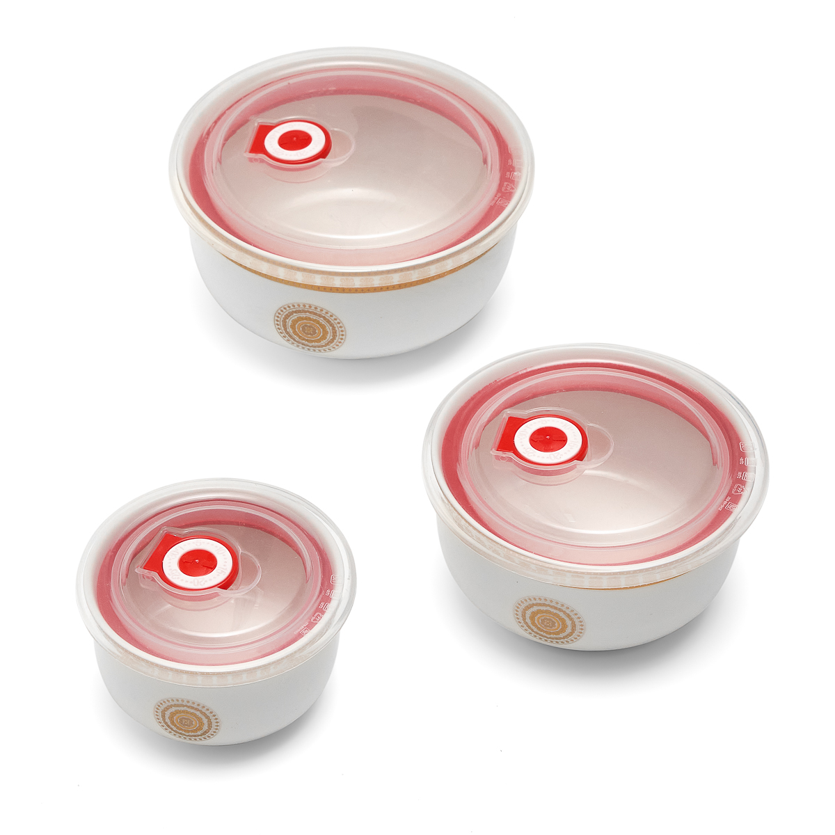 Набор состоит из 3 контейнеров, разного объёма, с крышками. Эта посуда поможет любой хозяйке, эстетично сервировать стол и удобно хранить продукты. Пустые контейнера, можно компактно хранить друг в друге. Набор выполнен из высококачественного фарфора.