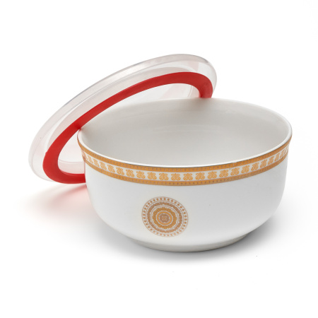 Посуда не впитывает в себя запахи еды, не окрашивается от продуктов. При необходимости салатники можно закрыть пластиковыми герметичными крышками, которые идут в комплекте. Крышки выполнены из пищевого полипропилена и имеют силиконовые уплотнители.