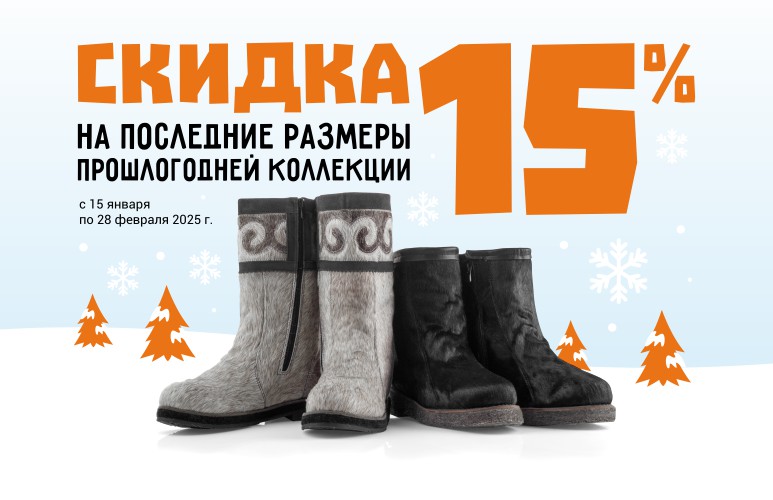 С 15 января по 28 февраля 2025г., - скидка 15% на последние размеры прошлогодней коллекции.