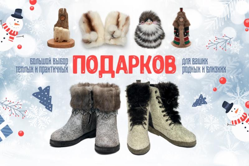 Тёплые и практичные подарки родным и близким. Сувениры из бивня мамонта, традиционная посуда, домашние тапочки. Широкий выбор меховых аксессуаров от брелоков до рукавиц и детских жилеток. Натуральные унты из Якутии, в наличии большие размеры. Женские укороченные модели на молнии.