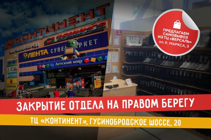Дорогие наши клиенты, информируем вас о закрытии отдела на правом берегу по адресу: ул. Гусинобродское шоссе, 20 ТРЦ «Континент».