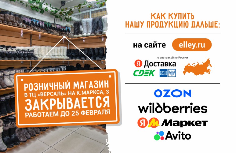 Розничный магазин "Эллэй" по адресу пл. К. Маркса 3, ТОЦ "Версаль" работает до конца февраля.
