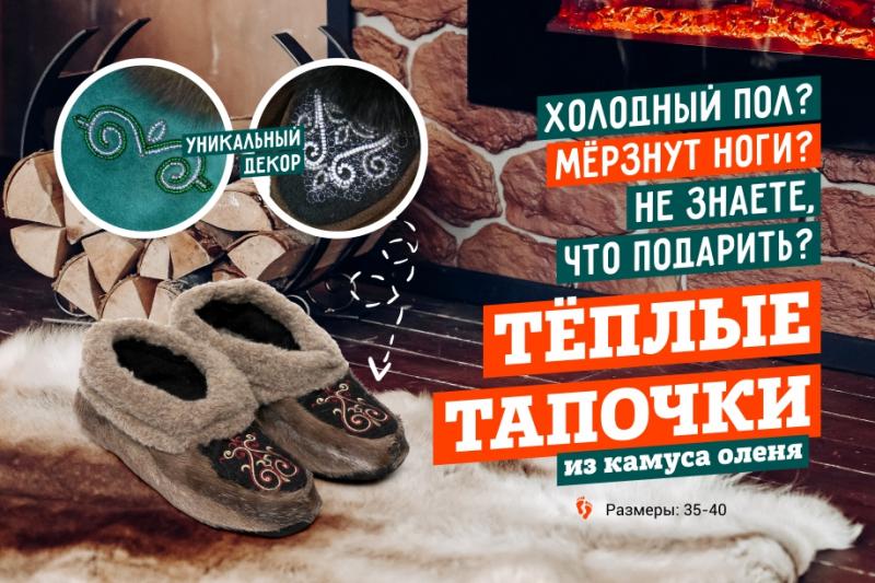 Закрытые, тёплые тапочки из камуса оленя помогут вам. У нас вы найдёте женские тапочки с 35 по 40 размер, из камуса оленя, 100% трикотажной пряжи, натуральной замши.