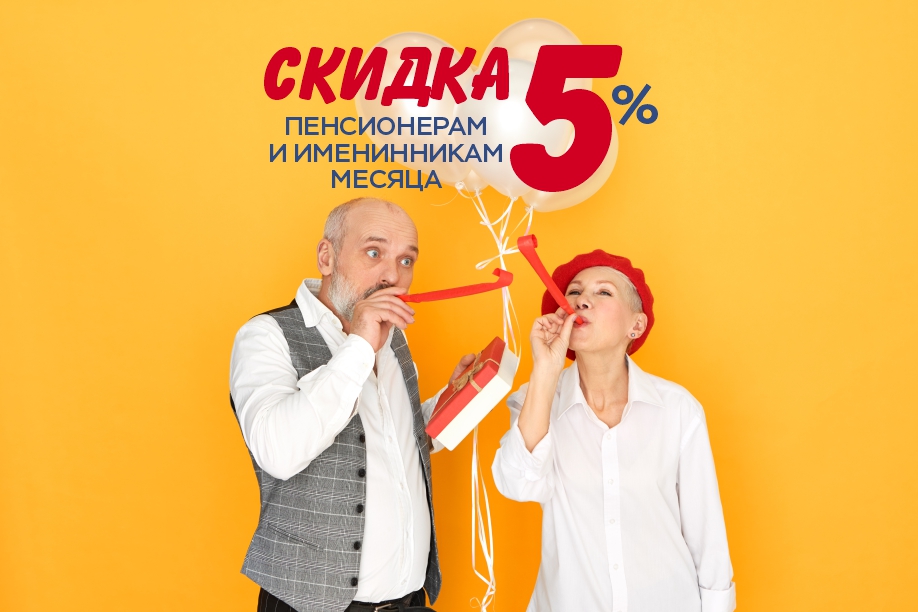 Скидка пенсионерам и именинникам месяца 5%
